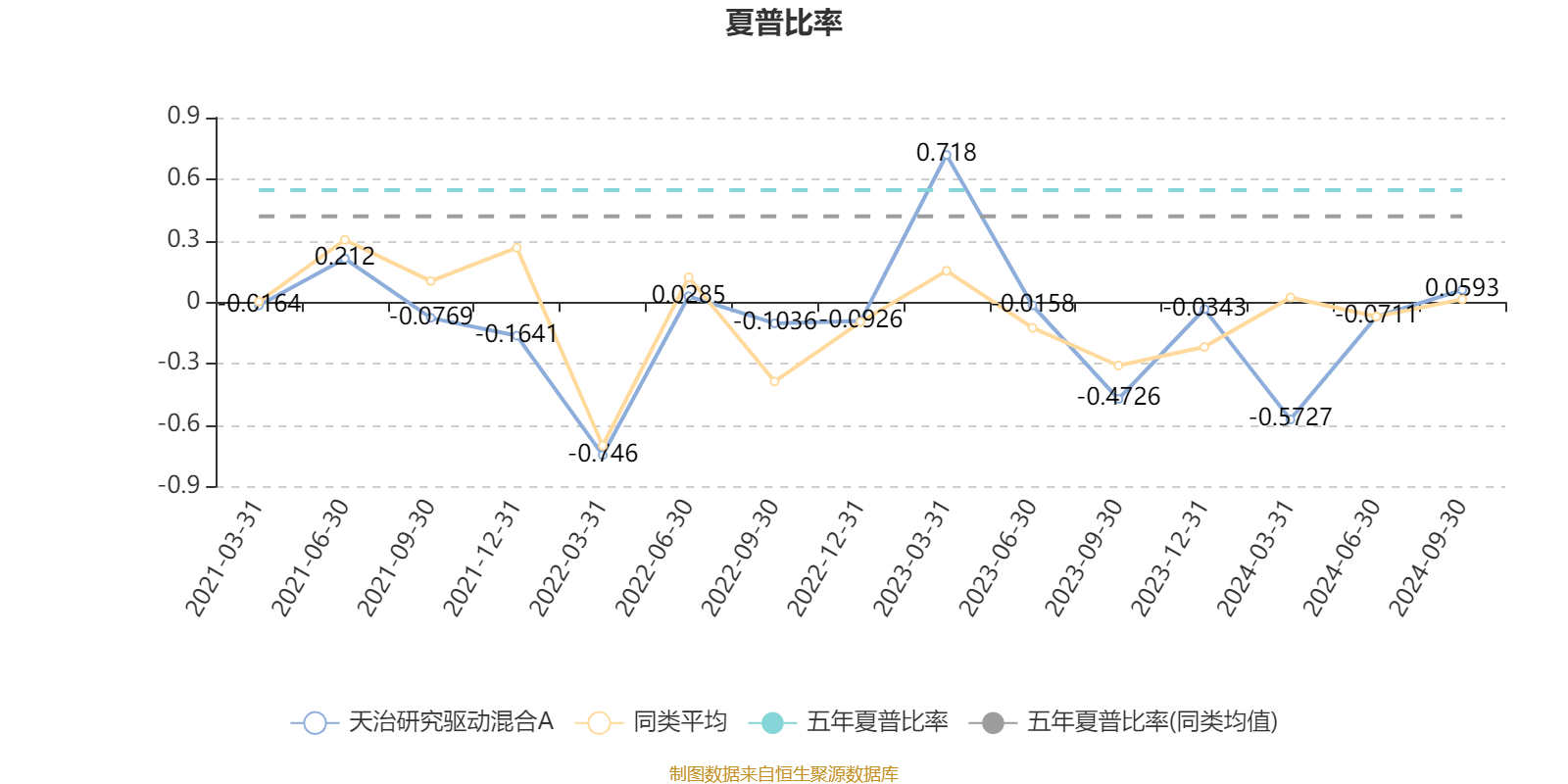 截至9月30日,基金近三年夏普比率为0.0259,位于同类可比基金47/109。
