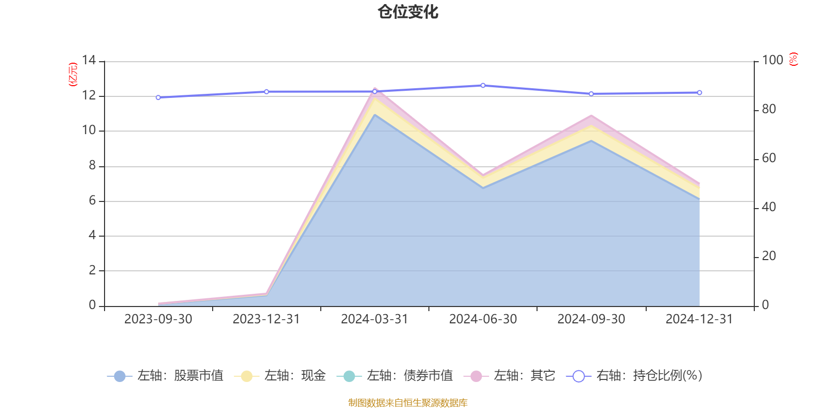据定期报告数据统计,成立以来平均股票仓位为87.38%,同类平均为84.67%。2024年上半年末基金达到90.12%的最高仓位,2023年三季度末最低,为85.17%。